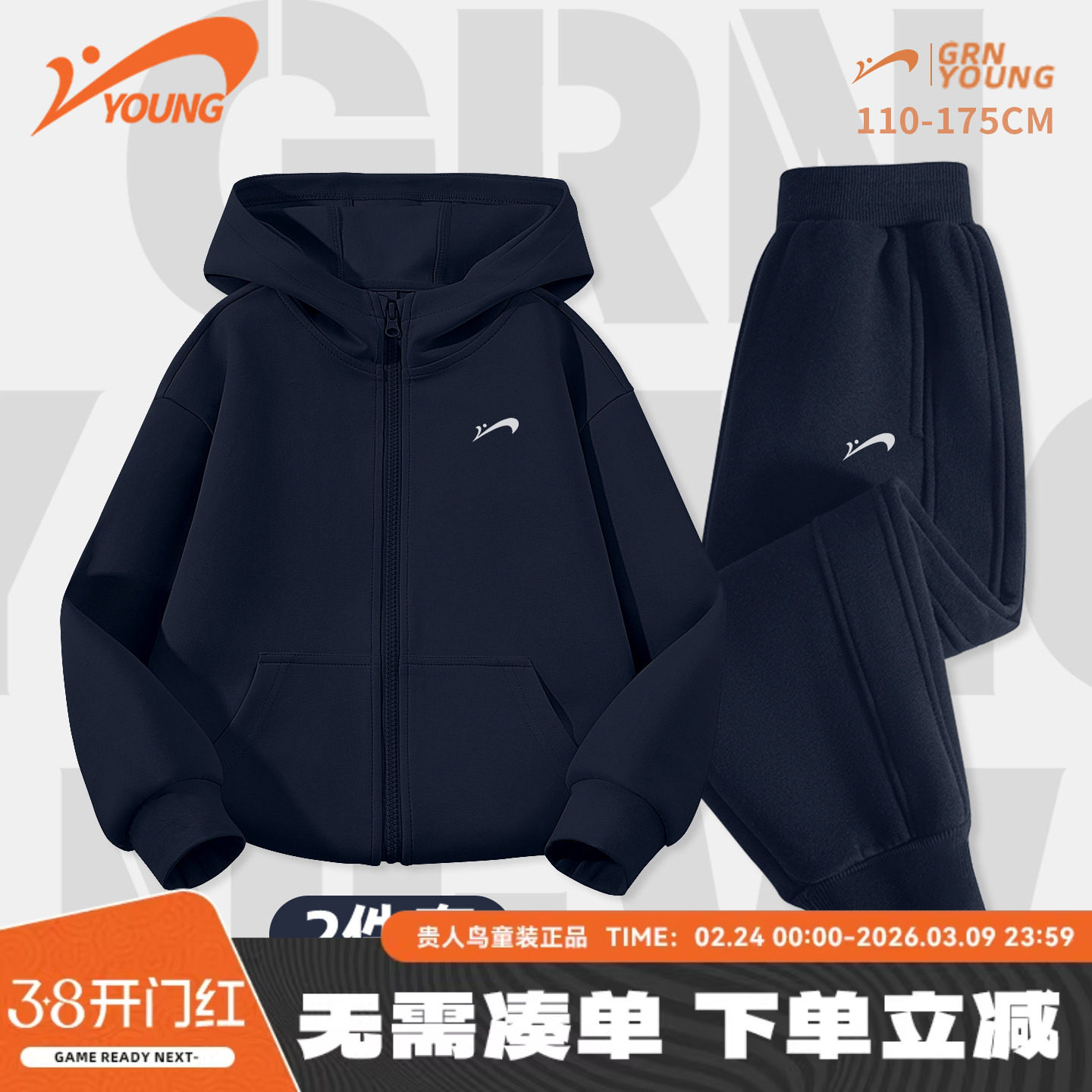 贵人鸟童装男童运动套装2026新款大童春秋款加绒衣服儿童春季卫裤