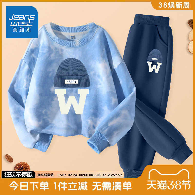 真维斯童装男童春秋款卫衣男大童冬季新款加绒套装儿童运动两件套