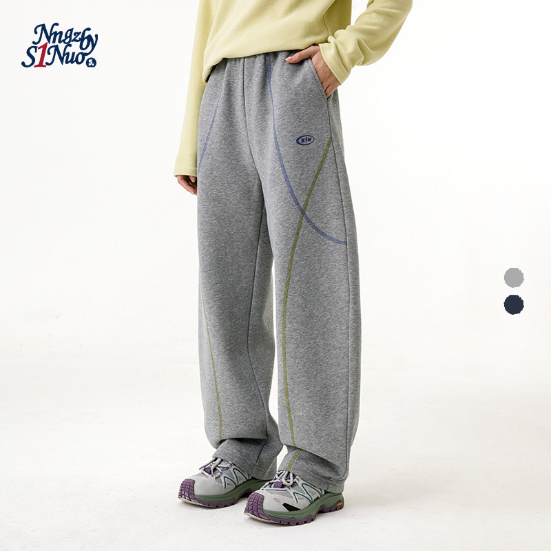 诺诺公主S1N初中生撞色弯刀卫裤女春秋加绒加厚设计感宽松运动裤