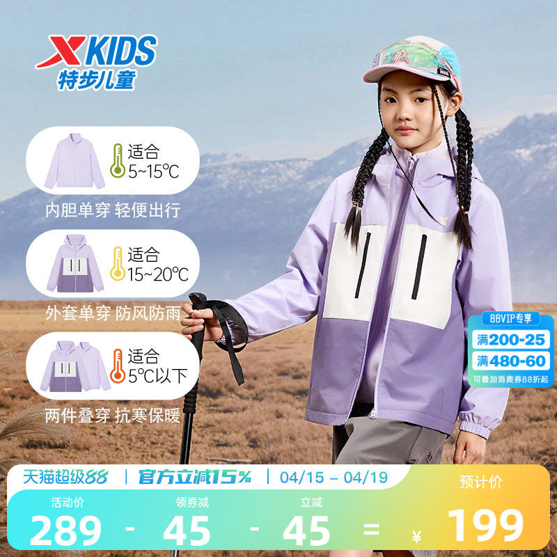 特步童装女童外套春秋季新款儿童加厚运动风衣冬装上衣防泼水防风