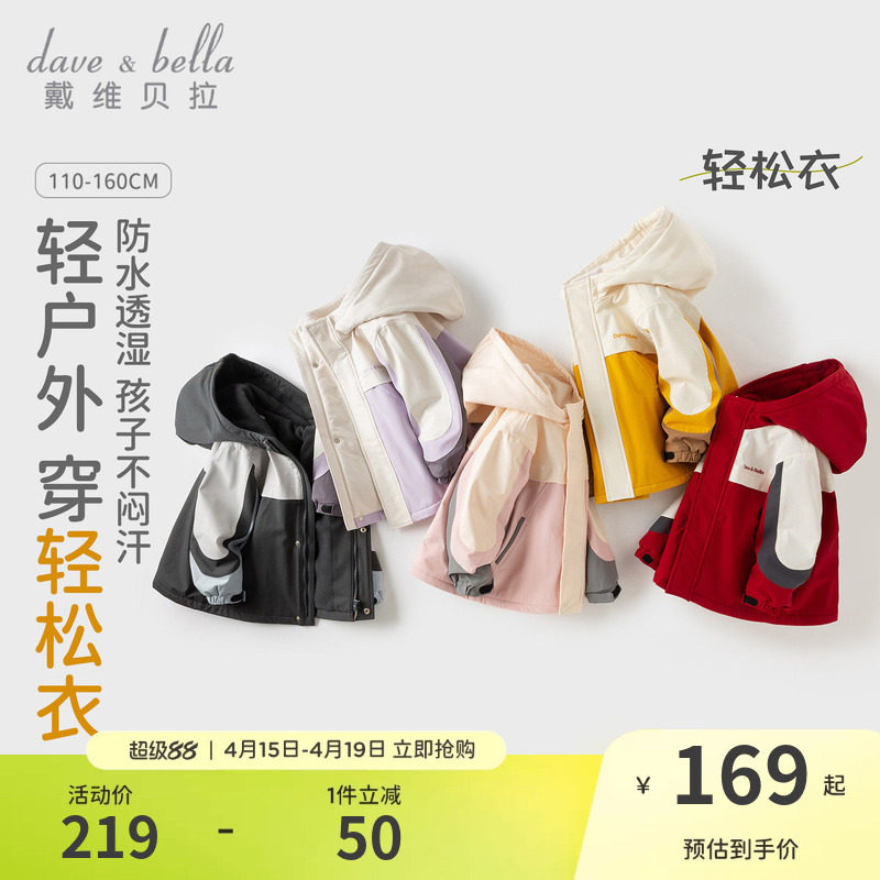 戴维贝拉儿童软壳防水外套春装新款童装男童女童棉服衣服加厚冬装
