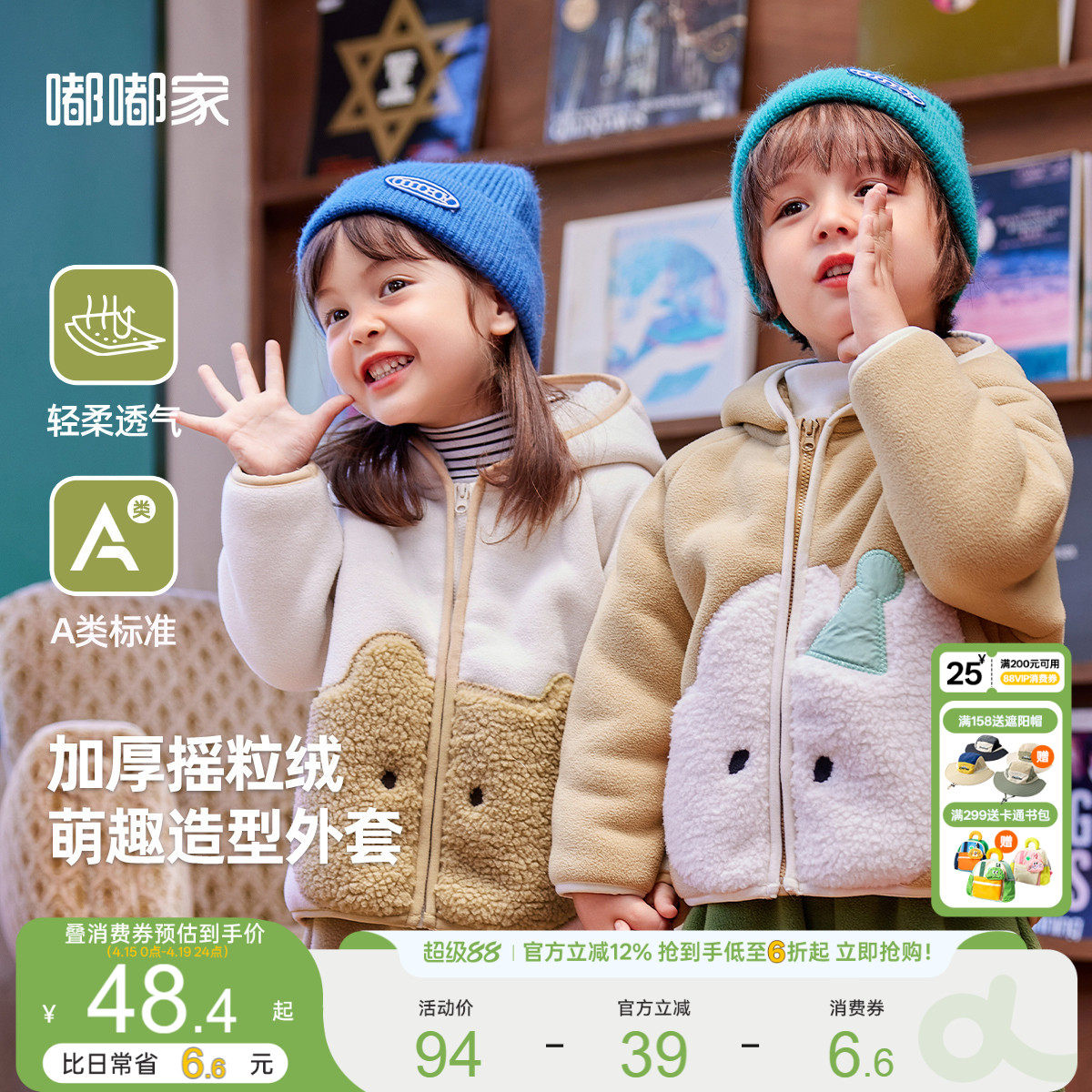 巴拉巴拉童装儿童外套女童上衣男童新款衣服秋冬珊瑚绒保暖加厚潮