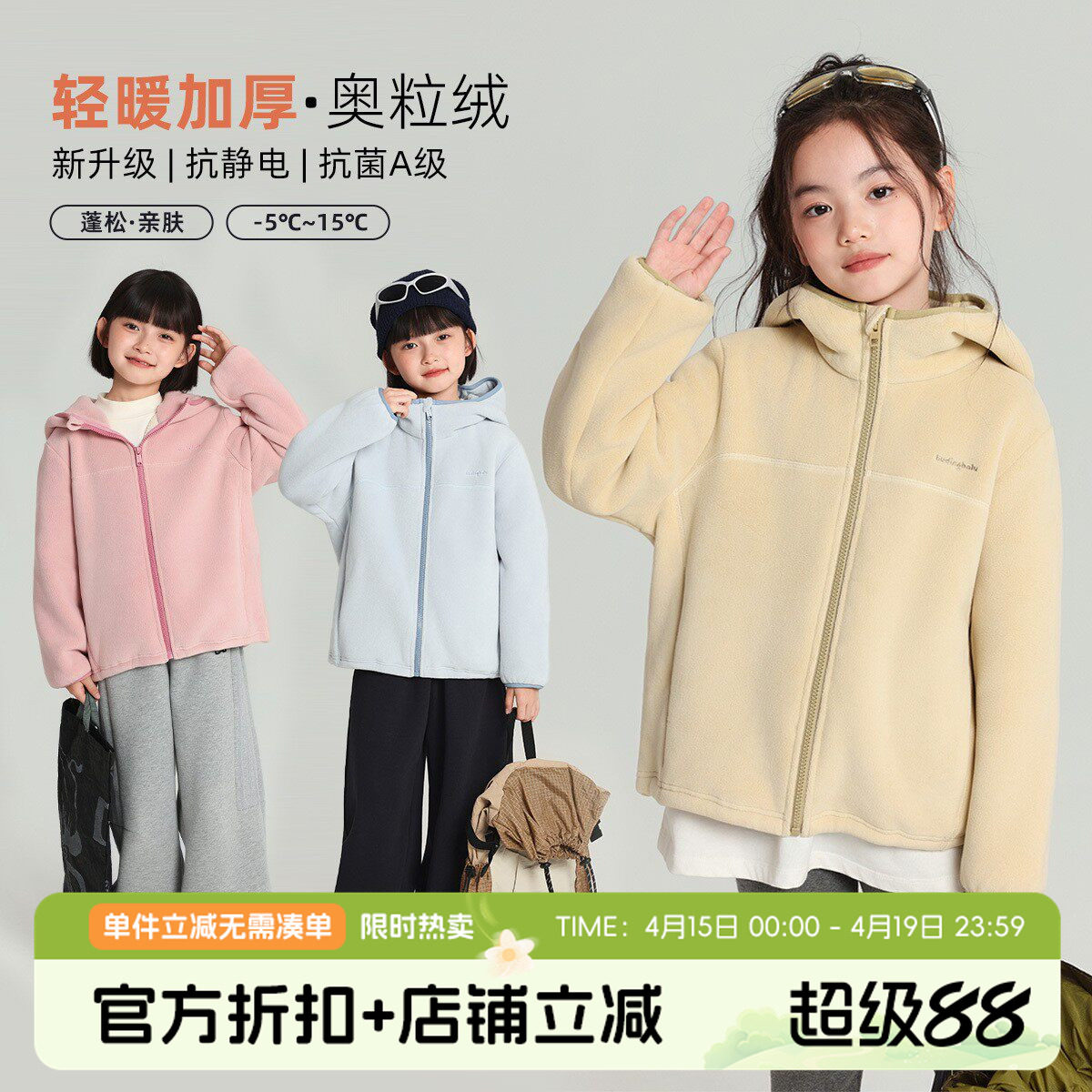 拓路者儿童抓绒衣男童女童春秋款摇粒绒外套加绒加厚柔软保暖衣服