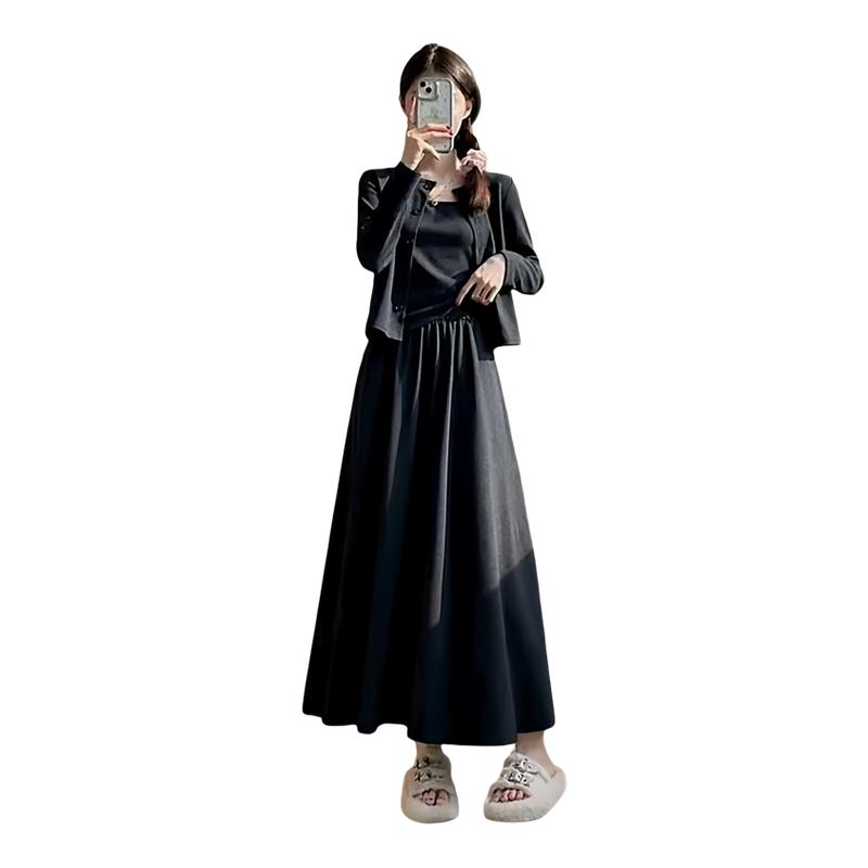 春秋季三件套裙子套装穿搭高级感韩系气质针百搭开衫吊带半身裙女