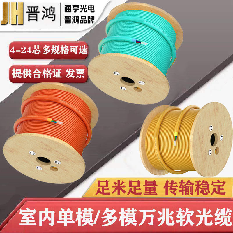 室内单模多模光缆万兆4芯6芯8芯12芯24芯48芯光纤线软光缆50/125GJFJV四芯六芯八芯光缆阻燃束状软光纤光缆线