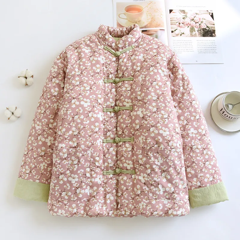 冬装新款妈妈装短款印花小棉衣中老年女装民族风立领棉服棉袄外套