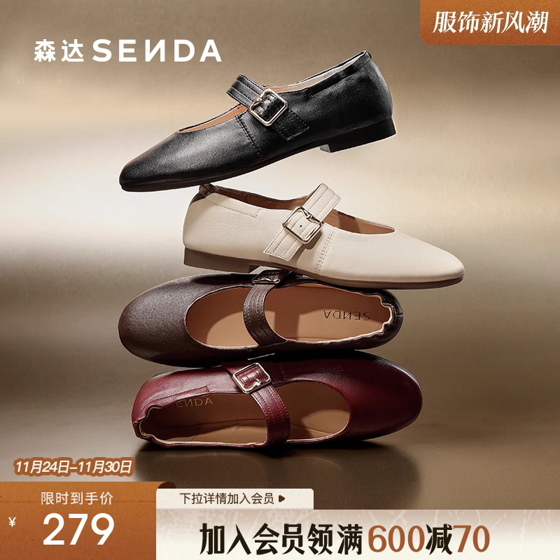 森达玛丽珍女款2025秋季新款舒适软面羊皮平跟浅口单鞋ZTH09CQ5