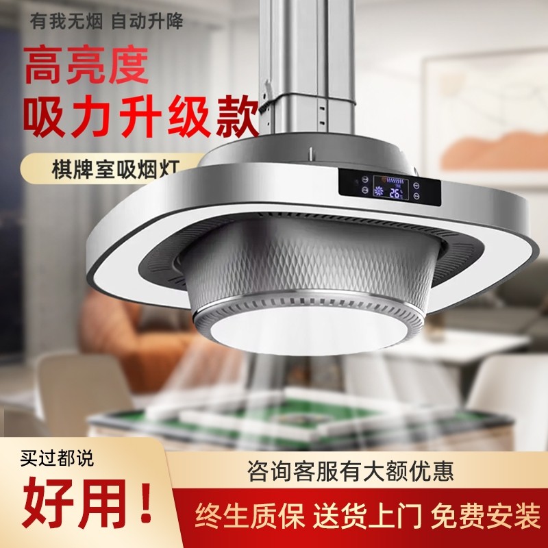 棋牌室吸烟灯无人自助麻将室麻将机空气净化器升降吊灯直排抽烟机