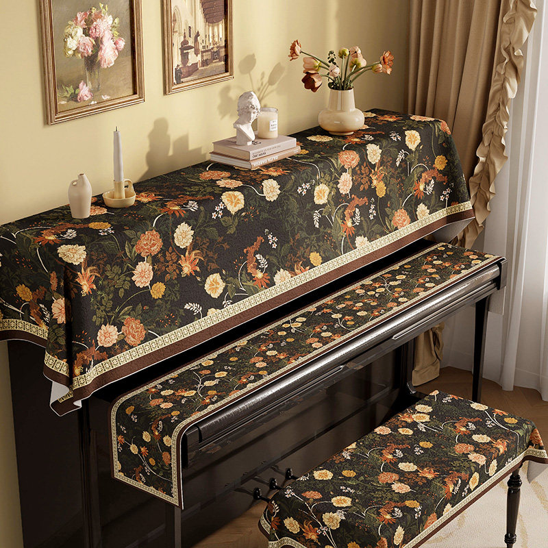 美式油画钢琴盖布防尘罩半罩电子琴轻奢高档高级感遮盖保护琴凳套