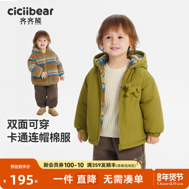 [两面穿]齐齐熊宝宝夹棉外套男童保暖棉服儿童秋冬装棉衣加厚棉袄