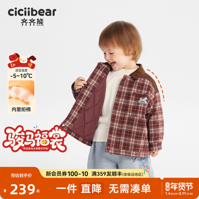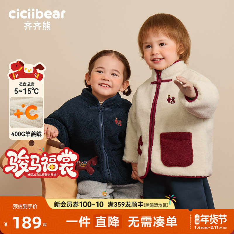[骏马福裳400g羊羔绒]齐齐熊宝宝夹棉外套男女童冬儿童棉服拜年服