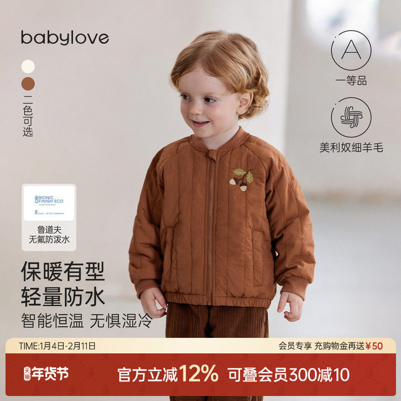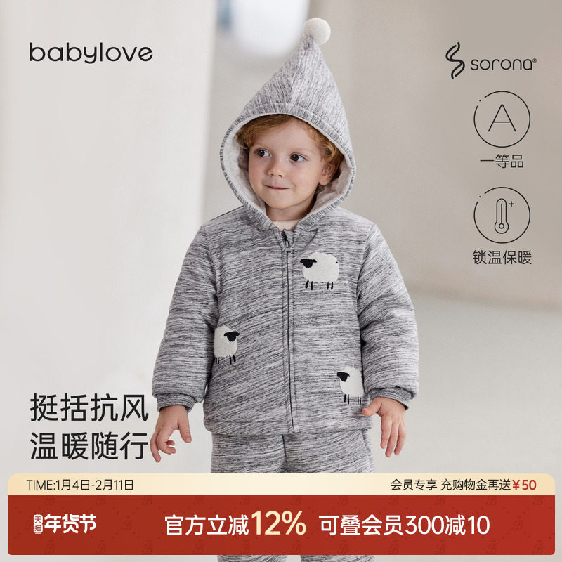 babylove宝宝夹棉外套冬季婴幼儿连帽保暖棉衣百搭外出加厚冬装