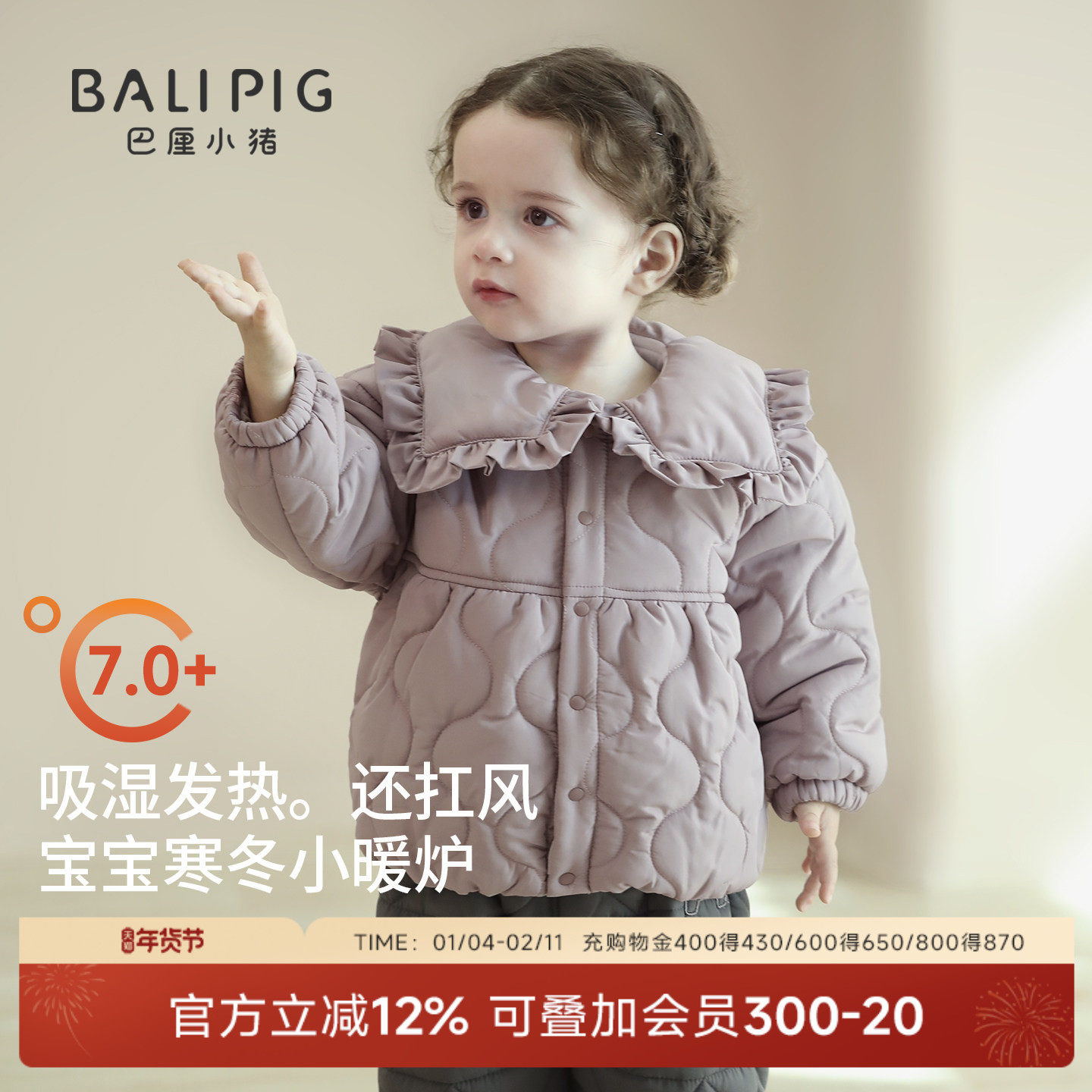 【暖护棉】男女宝宝夹棉外套冬季保暖婴儿童抑菌外出加厚上衣棉服