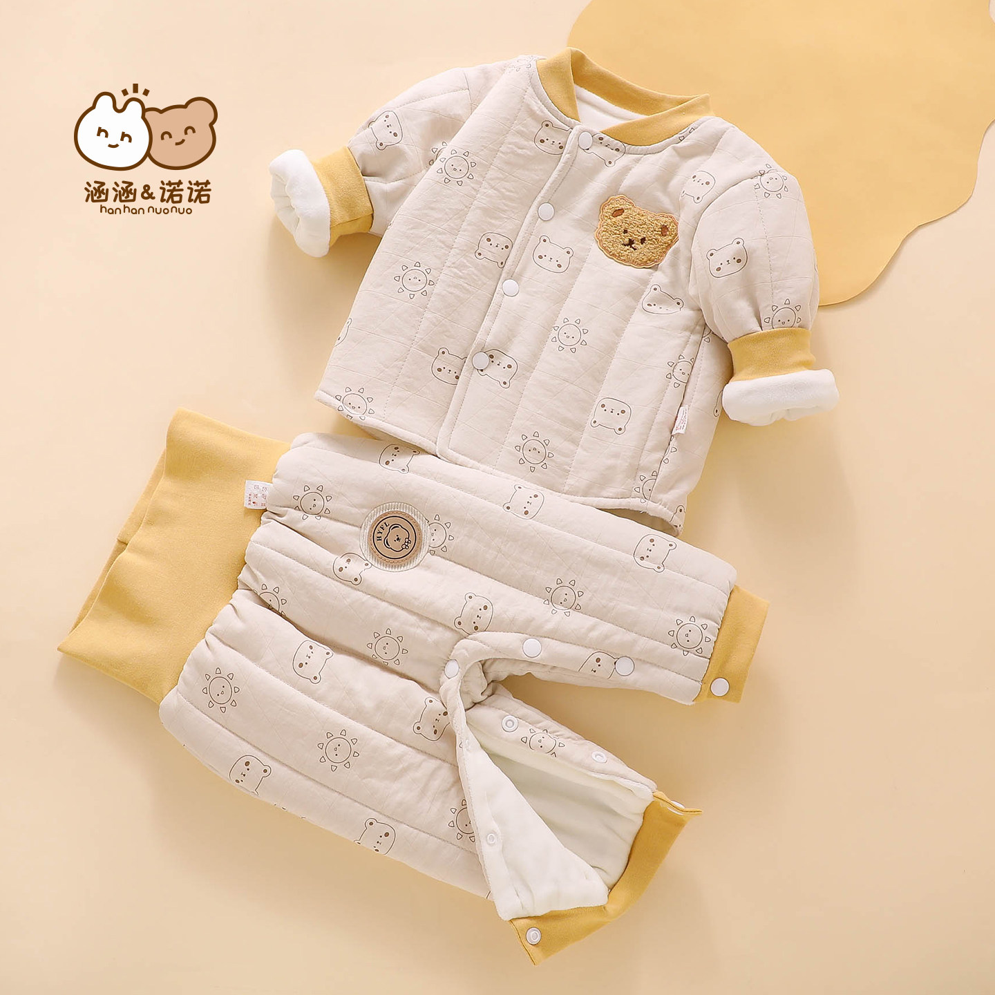 六个月宝宝夹棉外套冬季外出棉服加厚保暖套装婴儿分体棉衣两件套