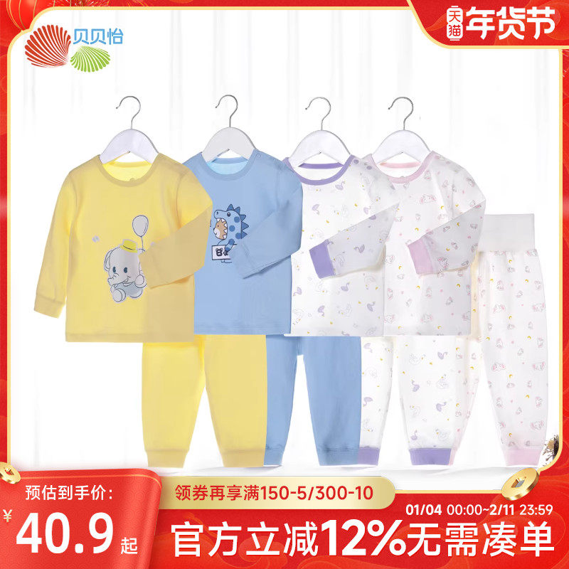 贝贝怡婴儿衣服高腰裤男女宝宝秋衣秋裤套装儿童内衣全棉纯棉春装