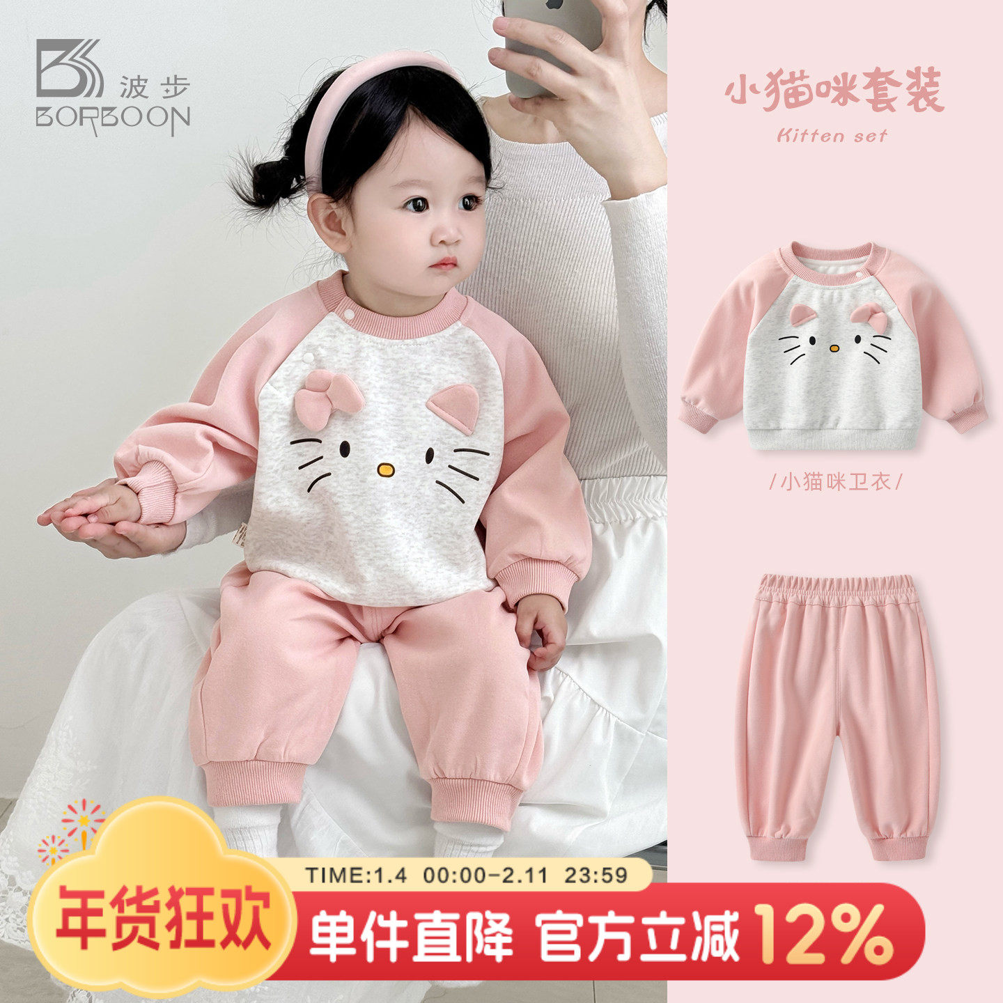 巴拉巴拉婴儿卫衣套装宝宝新年两件套儿童拜年服2026春装新款童装