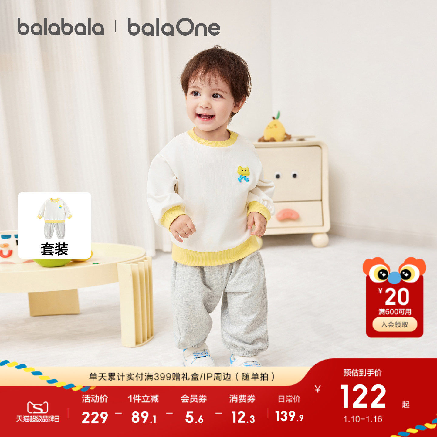 巴拉巴拉童装儿童套装两件套婴儿宝宝男女童2026新款春装萌趣舒适