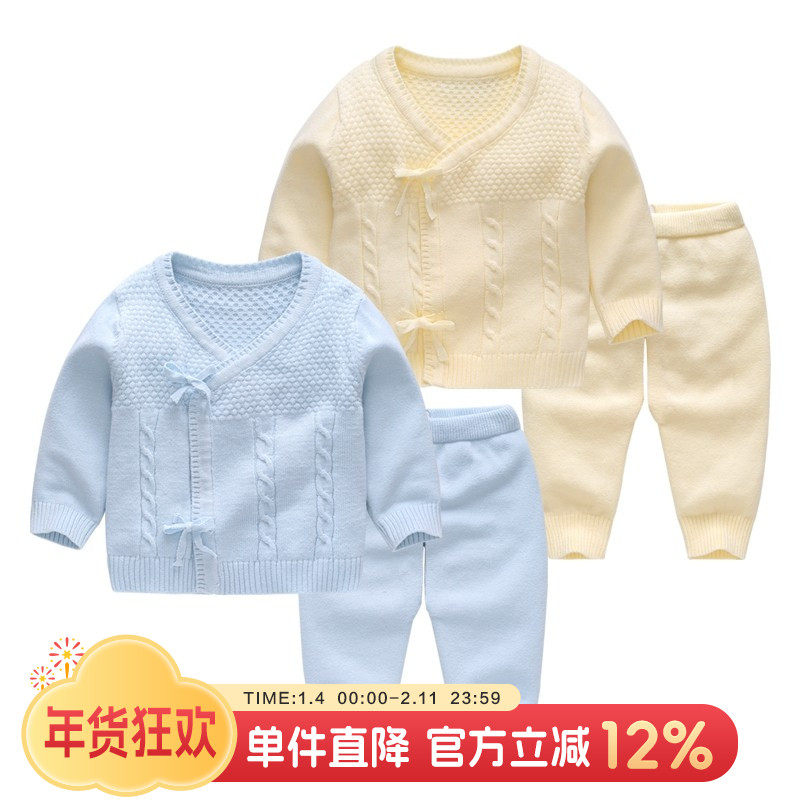 婴儿衣服秋冬男宝宝针织加厚套装冬装男童开衫外套春装分体两件套
