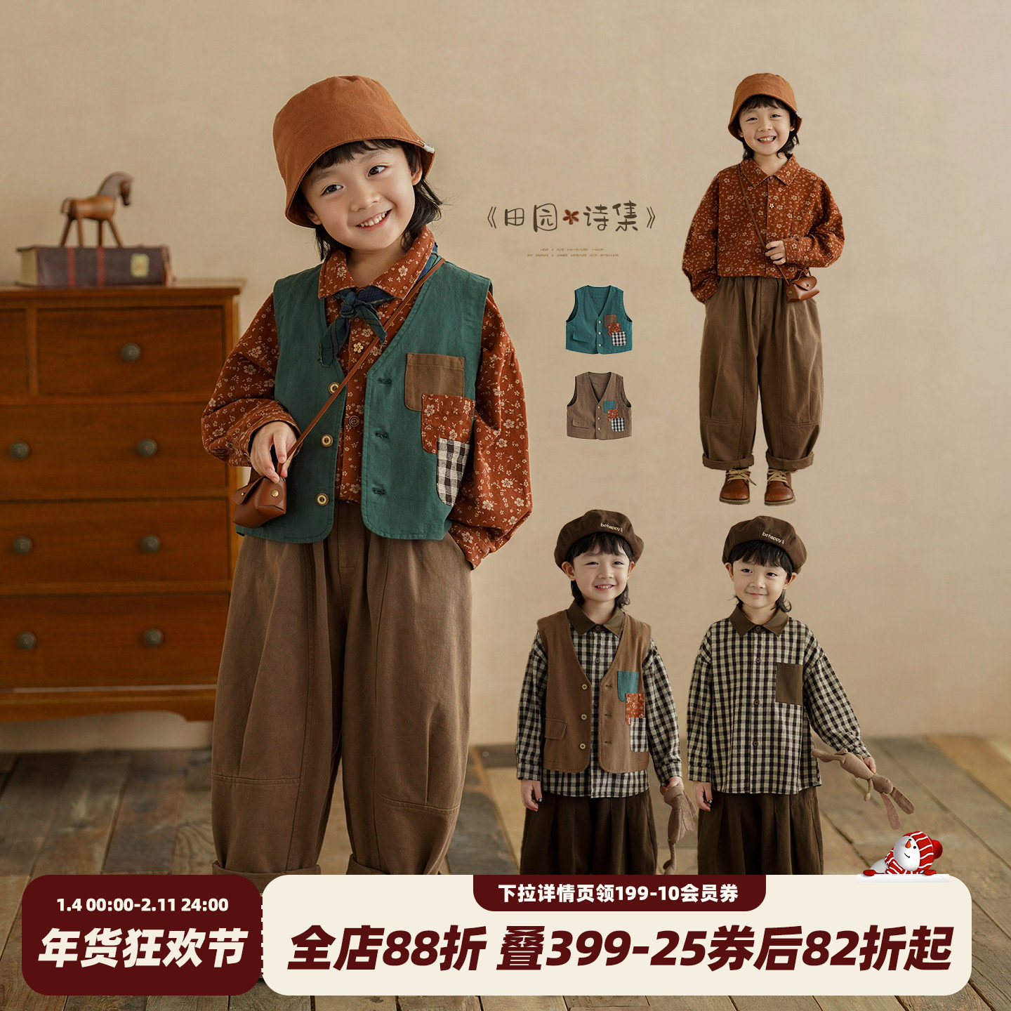 砚台家森系童装男童帅气马甲套装春秋新款儿童裤子宝宝三件套衣服