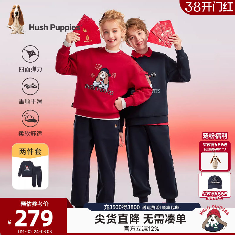 暇步士童装儿童套装春秋新品男童休闲女童卫衣卫裤运动新年款套装