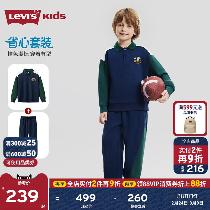Levis李维斯男童运动套装儿童卫衣童装裤子春秋装新款上衣长裤女