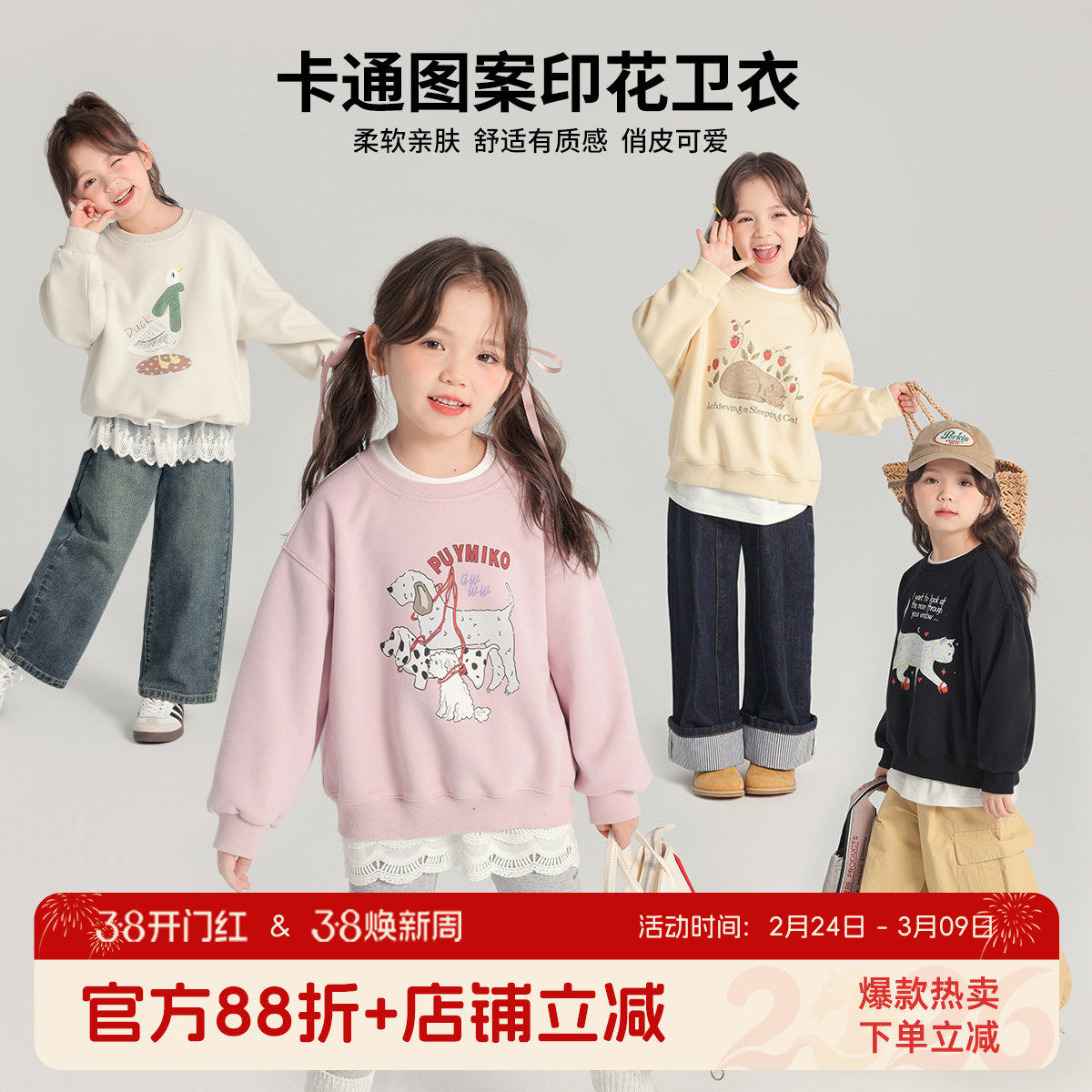布丁哈鲁春装童装女童洋气上衣2026春秋新款儿童加绒卡通印花卫衣