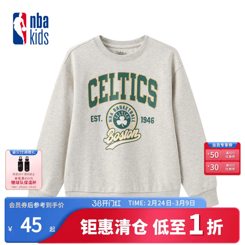 nbakids童装2025秋冬新款男女童休闲圆领卫衣百搭舒适K253TS140P