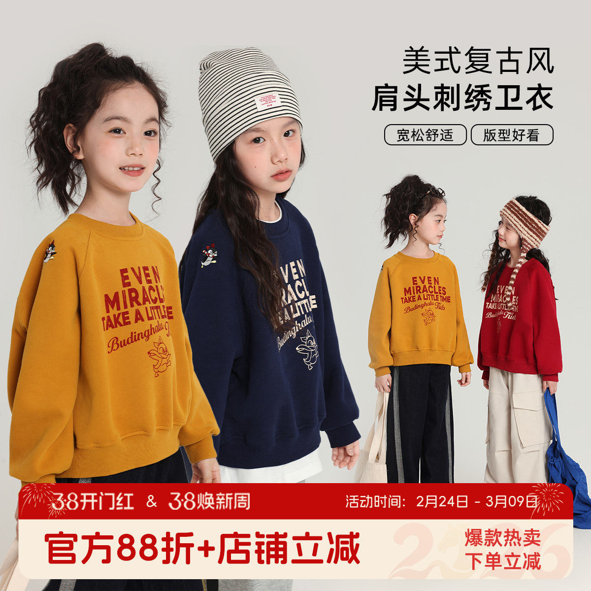 布丁哈鲁童装秋装女童上衣2026春秋新款儿童美式复古休闲印花卫衣