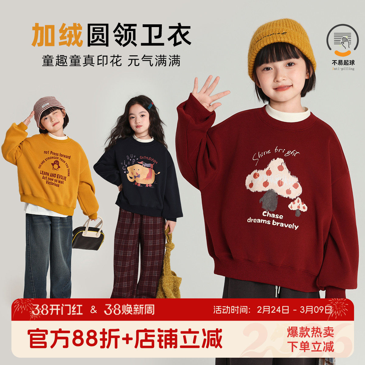 暇步士童装儿童卫衣25秋冬新品男童摇粒绒卫衣女童保暖套头厚上衣