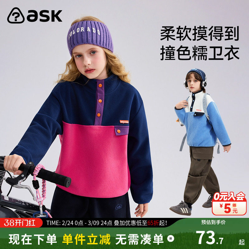ask儿童卫衣2026春秋新款男女童摇粒绒上衣中大童休闲长袖童装