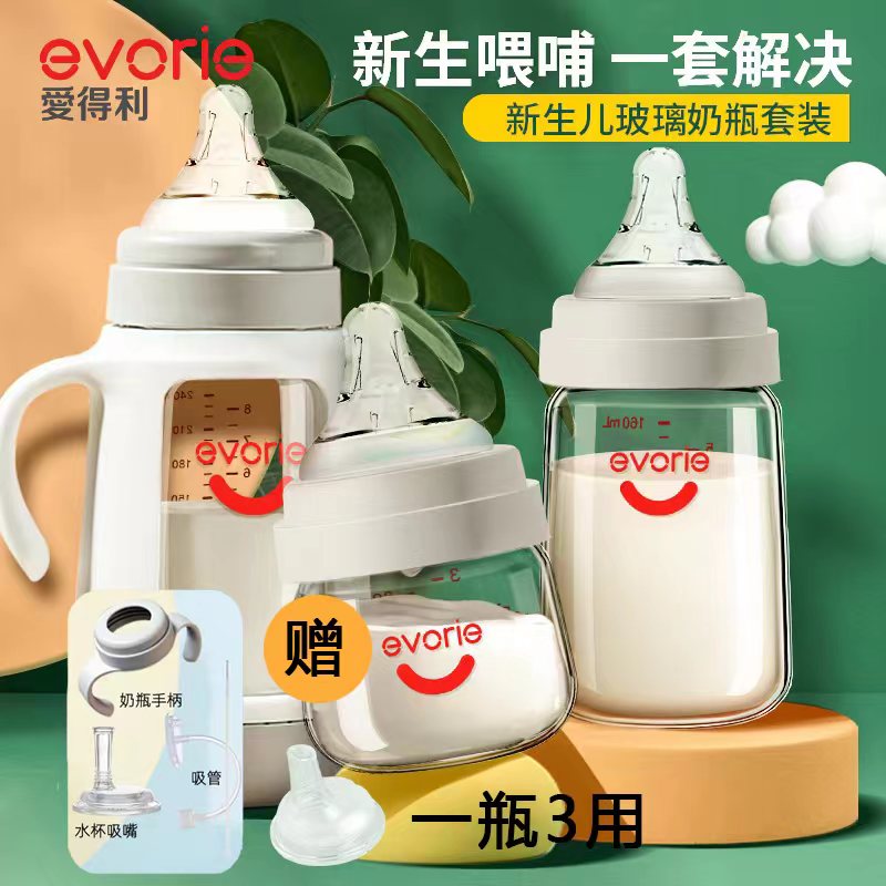 爱得利宽口径玻璃奶瓶新生婴儿奶瓶防胀气防呛奶初生宝宝喝水瓶子