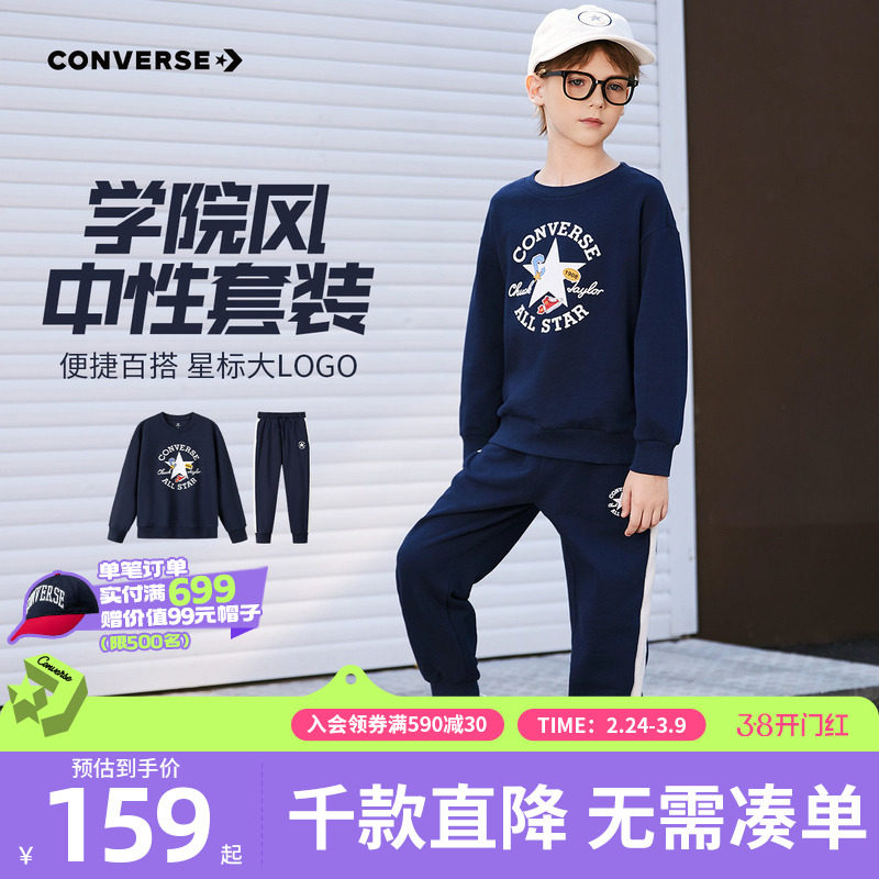 匡威童装男童套装2025冬季季加绒中大童卫衣长裤两件套校园运动服