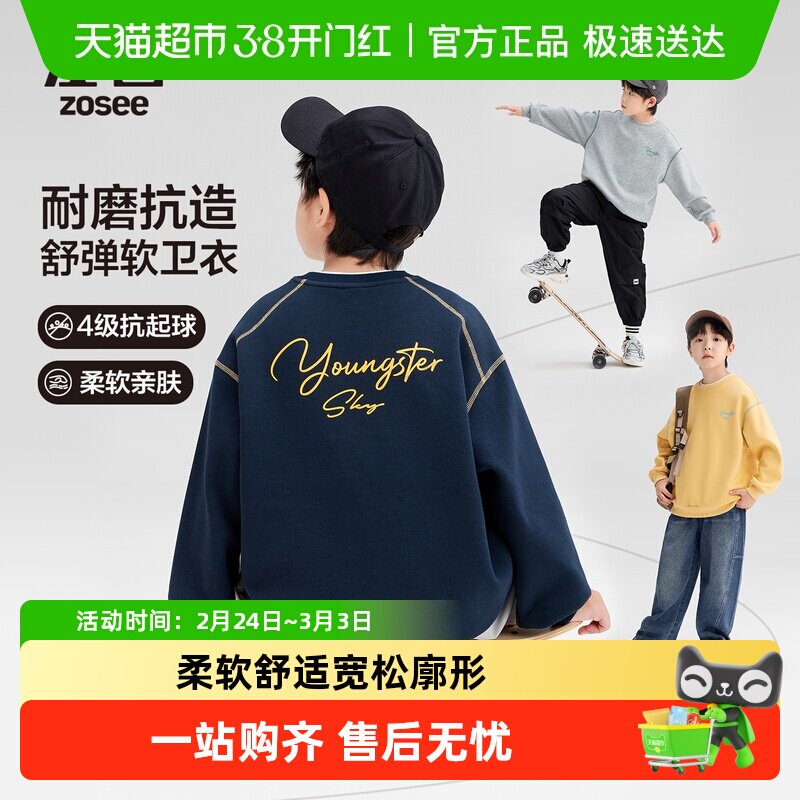 左西童装男童卫衣2026新款儿童外套春秋款圆领长袖打底衫大童春装