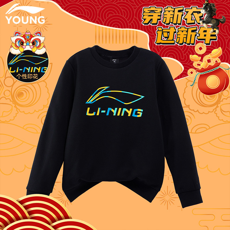 李宁男童卫衣官方旗舰正品青少年大童秋装儿童男孩加绒保暖款上衣