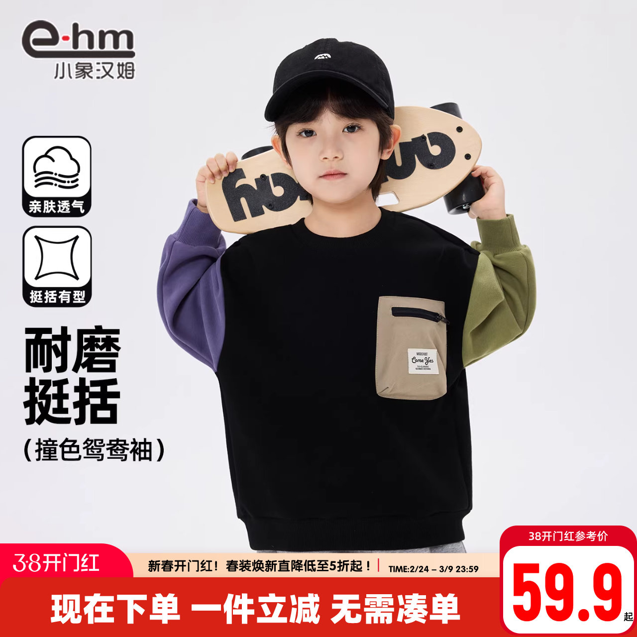 小象汉姆童装男童卫衣休闲春秋2026春装新品儿童拼接上衣中大童