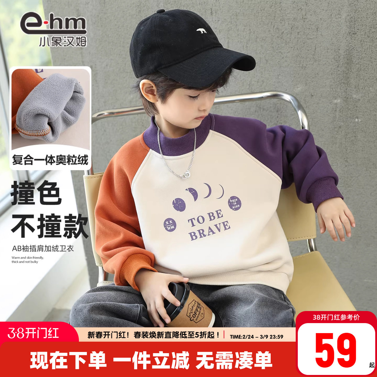小象汉姆童装男童加绒卫衣儿童圆领套头中大童冬装新款宽松2026潮