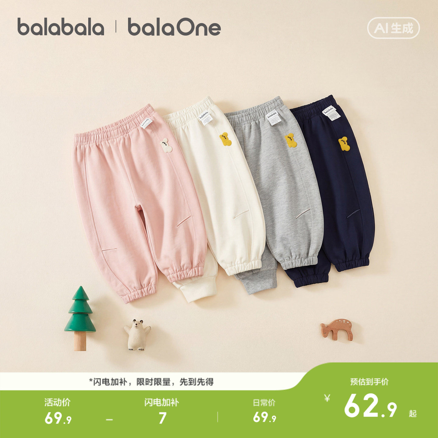 巴拉巴拉童装儿童裤子男女童2026新款春装长裤宝宝卫裤运动慢跑裤