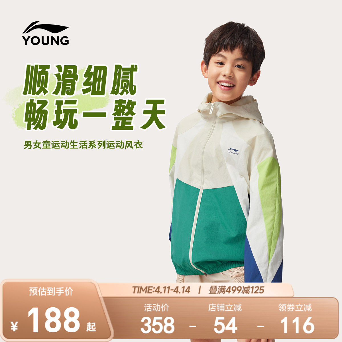 李宁儿童运动风衣防晒防泼水透气外套男女童装中大童2026新款夏装