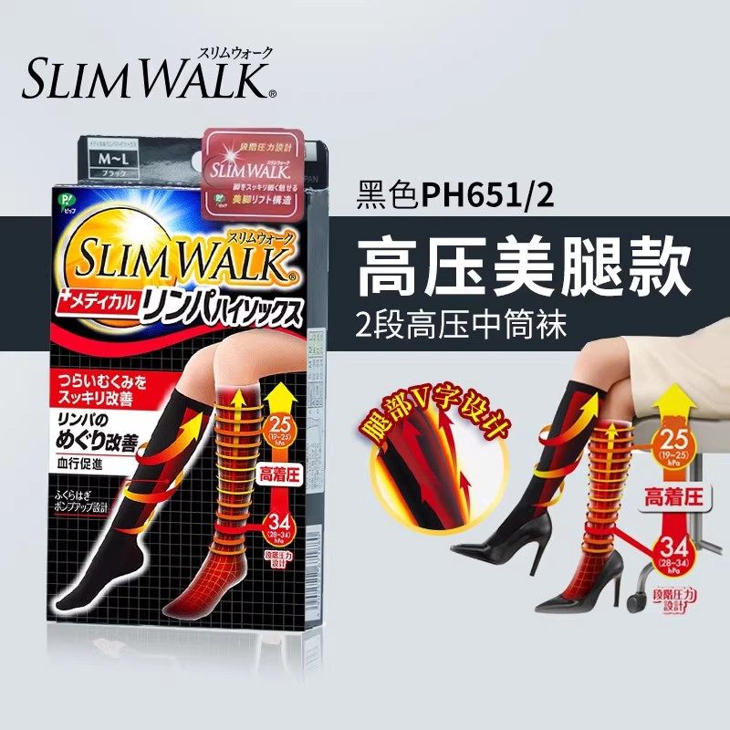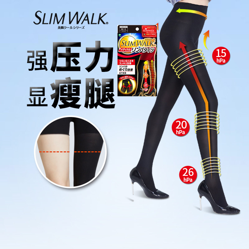Slimwalk塑形睡眠袜女压力袜显瘦腿袜高压美腿裤袜日本长筒袜春夏