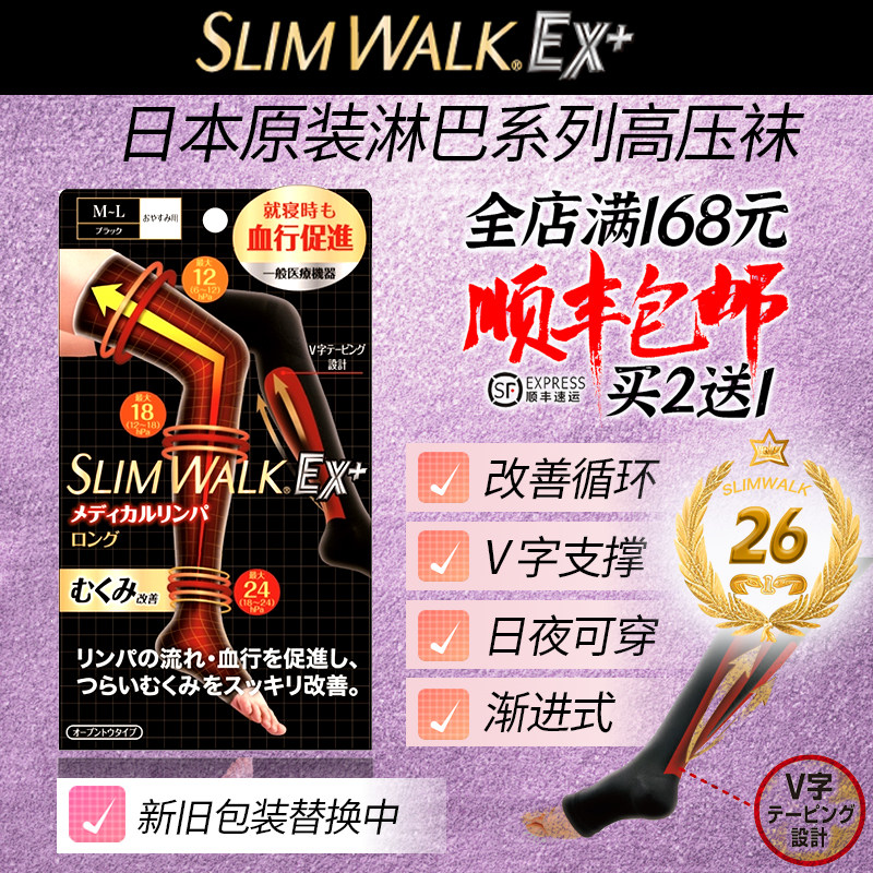 Slimwalk塑形睡眠袜女强压力袜长筒袜美腿袜日本显瘦腿袜日本进口