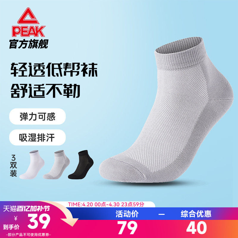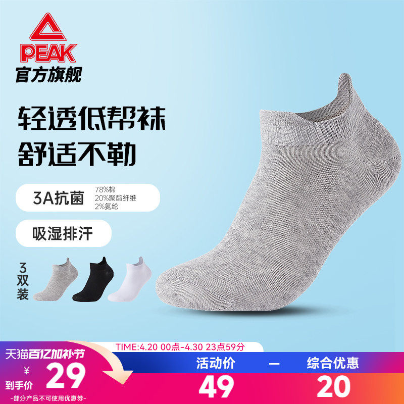 匹克低帮运动袜男女夏季新款透气短袜舒适耐磨跑步袜3双官方正品
