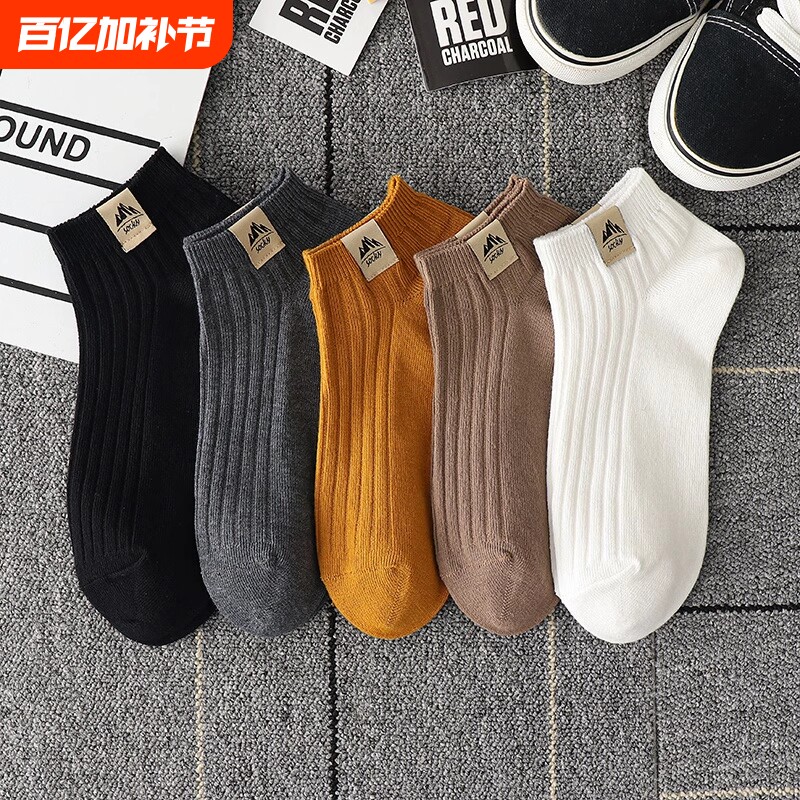 5双袜子男士短袜春夏款纯色百搭吸汗防臭透气低帮运动袜船袜男款