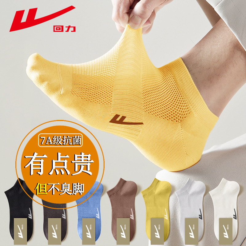 回力纯棉新疆棉7A抗菌男士防臭春秋短袜透气吸汗夏季薄款船袜低帮