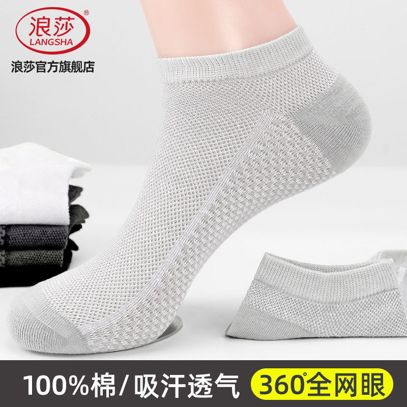 浪莎袜子男士夏季薄款透气纯棉短袜夏天低帮男袜全棉运动短筒船袜