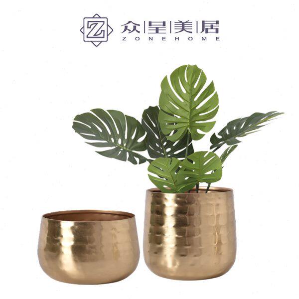 现代金色金属花盆意式新亚洲风格阳台花架摆件样板房玄关果盘花器