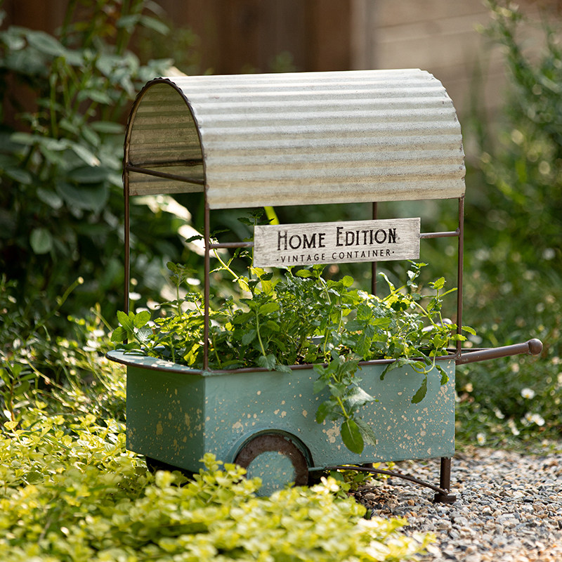 美式复古手推车花盆花架铁艺花器做旧创意户外花园花房装饰收纳盒