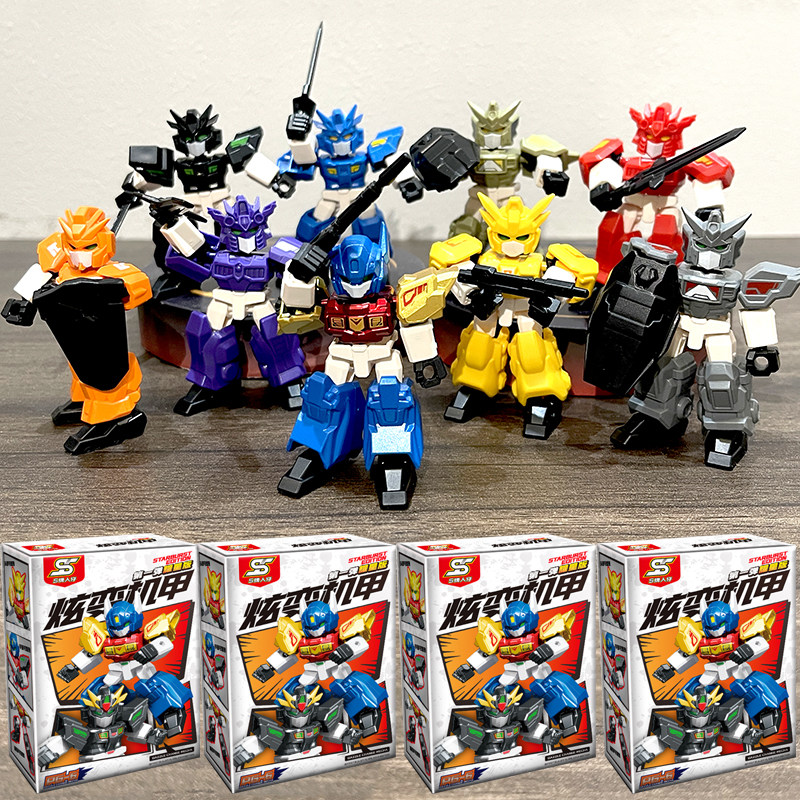 潮玩精致款炫变机甲流光勇士积木人仔拼装机器人幼儿园礼品玩具男