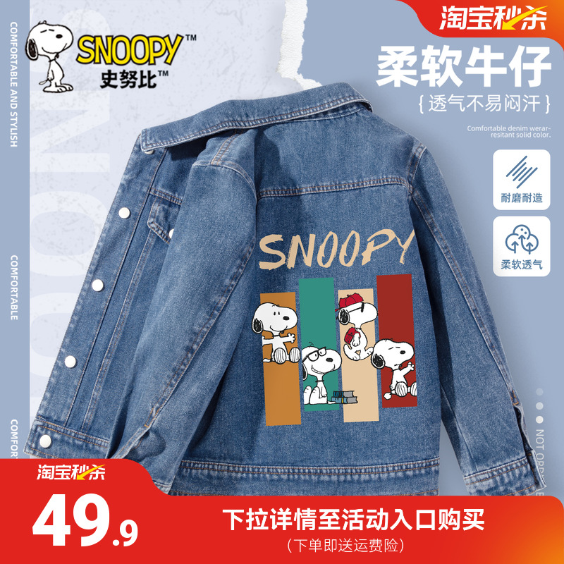 史努比男童外套2025新款男孩纽扣牛仔衣中大童秋季运动服儿童秋装