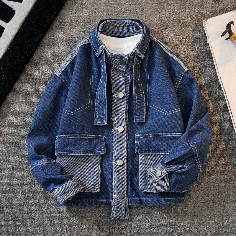 男童牛仔外套春秋装2025新款儿童时尚翻领夹克中大童洋气拼色上衣