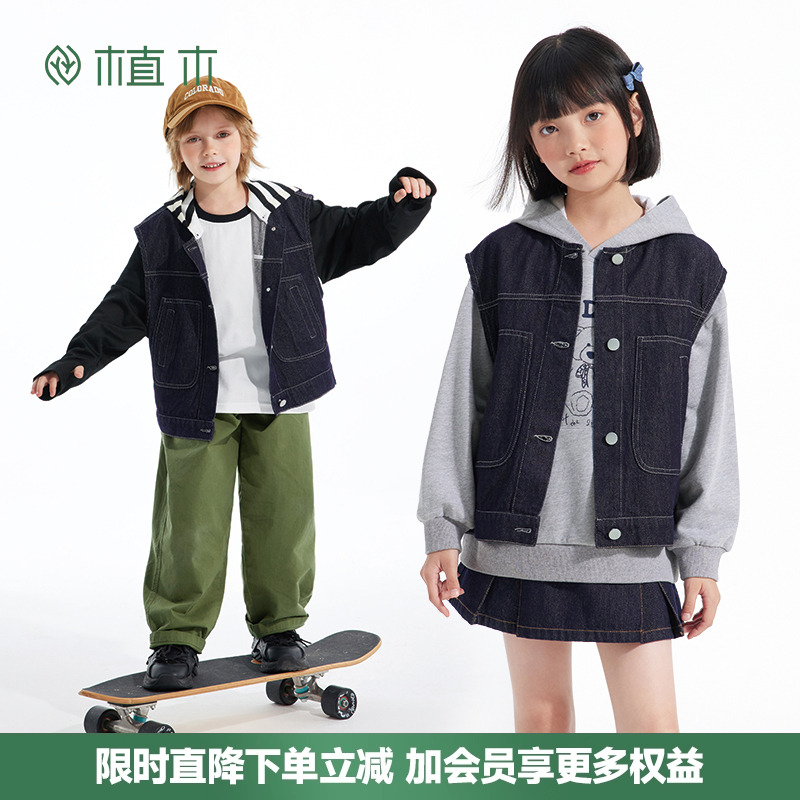 植木童装男童马甲2025春秋新款中大童牛仔马甲外套上衣儿童马甲